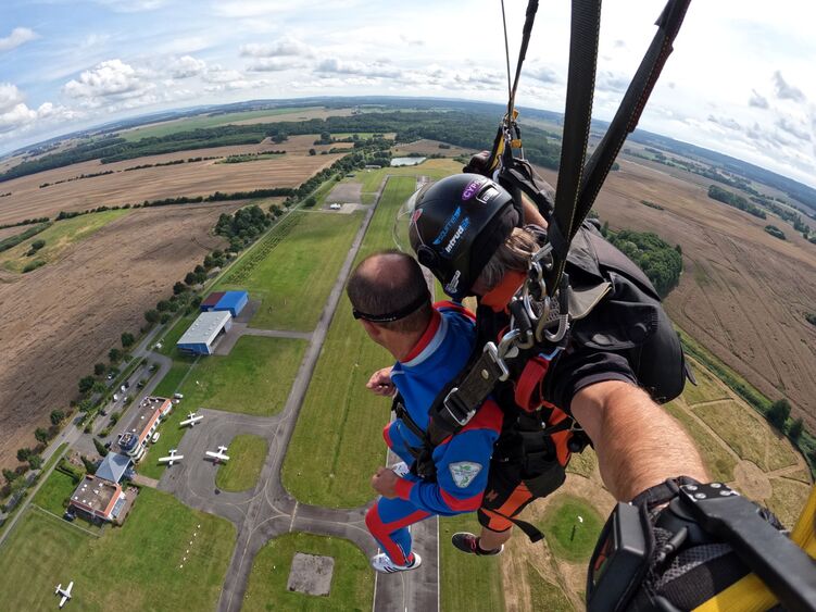 Das Fallschirmsportzentrum Rügen sitzt in Mecklenburg-Vorpommern direkt auf der Insel Rügen. Gesprungen wird am Flugplatz Rügen nahe Güttin. Wer die Gegend kennt, weiß: Hier oben ist Weite. Felder, Bodden, die Ostsee – und bei klarer Sicht erkennst Du die Küstenlinie aus der Luft sehr deutlich. Ein Tandemsprung auf Rügen ist landschaftlich etwas anderes als ein Sprung im Binnenland.