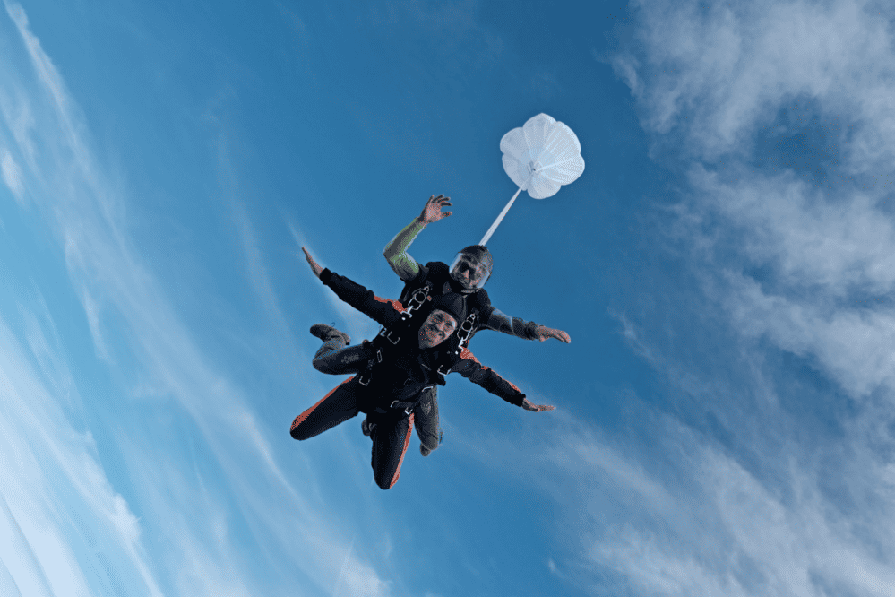 Der Tandemsprung erfolgt in der Regel aus 4.000 Metern Höhe.